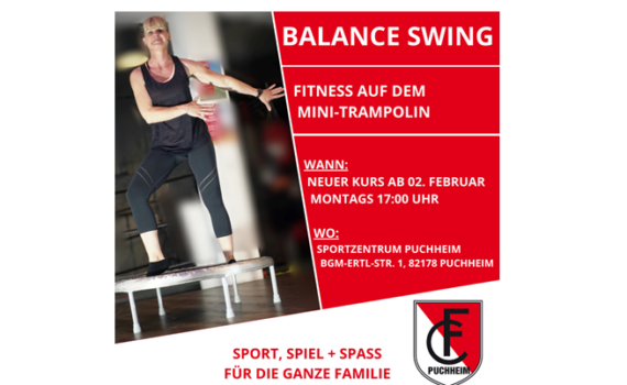 Balance Swing™ - Fitness auf dem Mini Trampolin Ein neuer Kurs startet im Februar - immer montags um 17 Uhr.Kommt am 02. Februar vorbei zur Schnupperstunde!Mit Balance Swing™ bringst du deinen Körper in Form und hältst dich fit.Unser Fitnessprogramm vereint Ausdauertraining, Gleichgewichtstraining, Krafttraining und Entspannung und ist somit ganzheitlich.Und das Beste […]