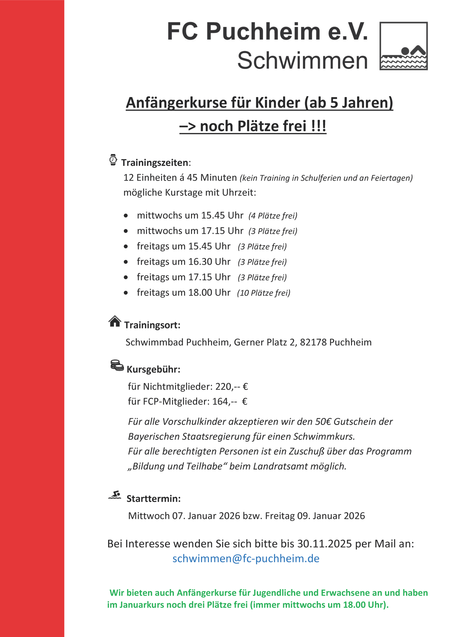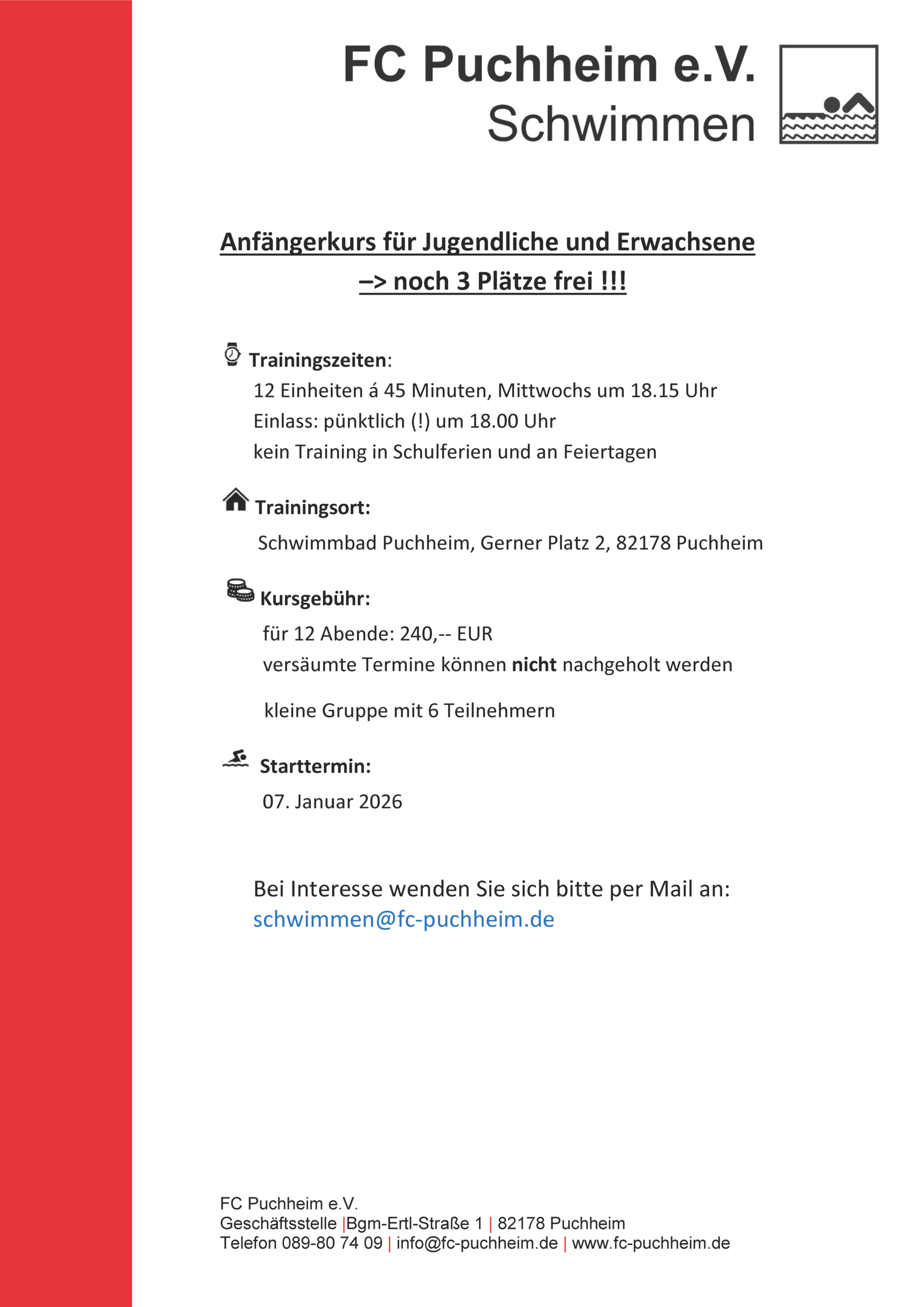 NEU beim FC Puchheim: Stretching & Faszientraining: Mehr Beweglichkeit durch Stretching und Faszientraining. Ob nach Verletzungen des Bewegungsapparats oder als fester Bestandteil […]